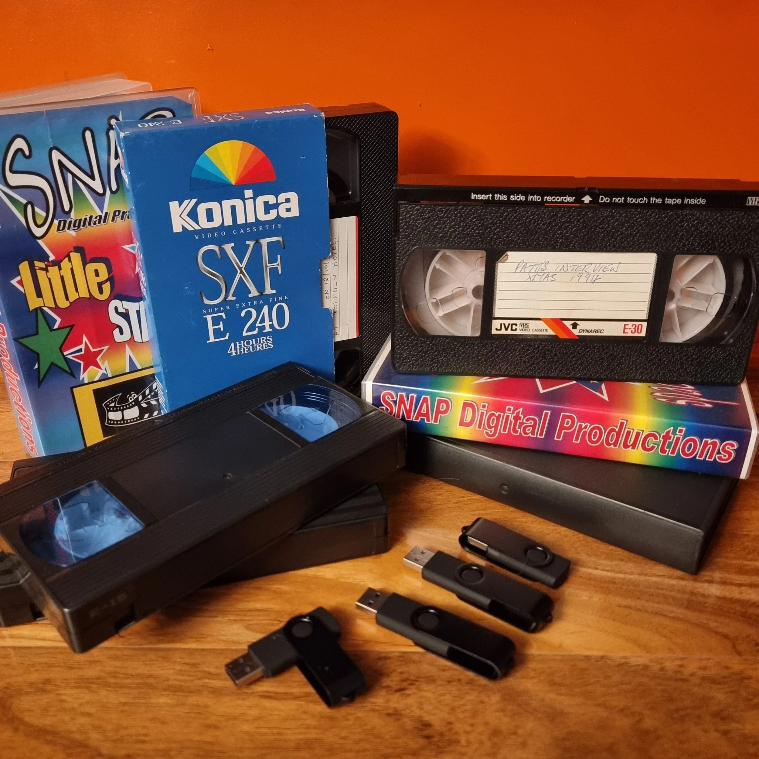 Hi-8, VHS and mini DVD all converted to an easily watchable format on a USB stick